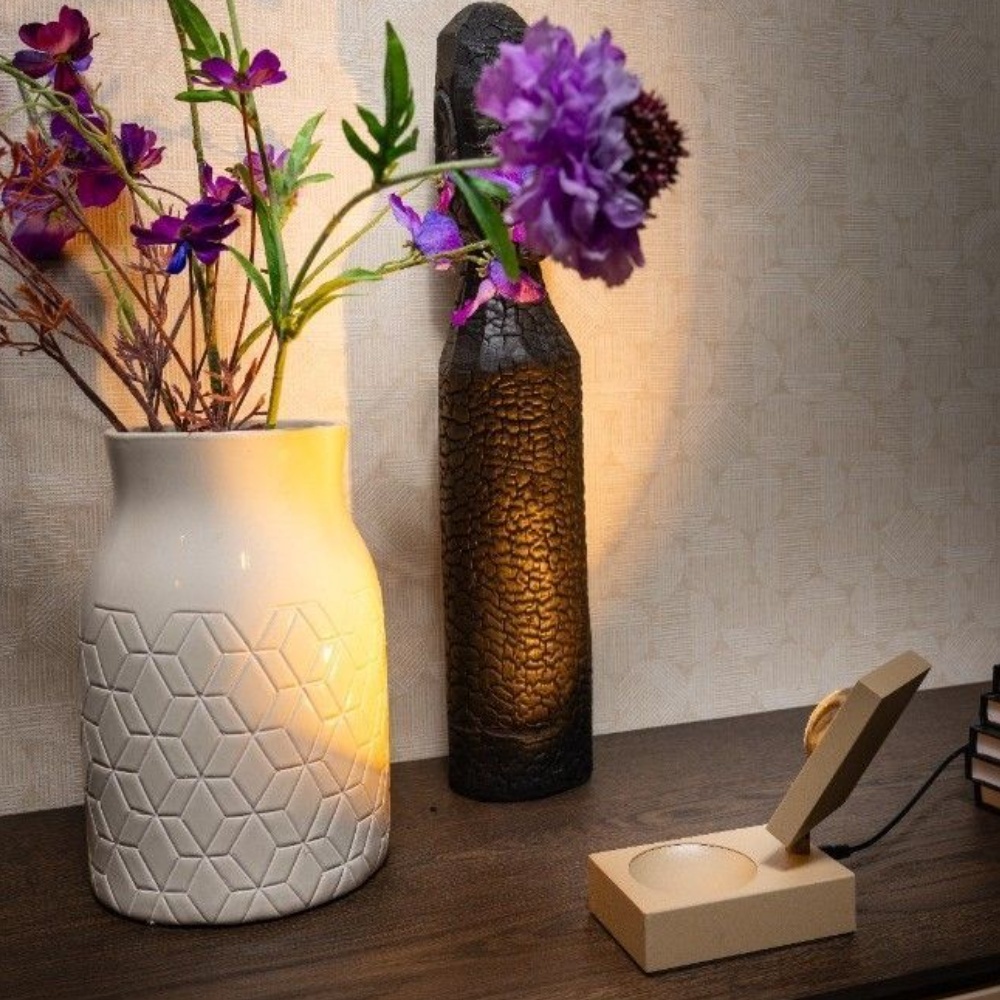 Een moderne tafellamp van ETH. De tafellamp heeft een geïntegreerde ledmodule van 10W met 721 lumen en een warme lichtkleur van 2700K. Bovendien is de lamp ook nog eens te dimmen in 3 standen door middel van de schakelaar. Deze kop van deze lamp (welke vrij richtbaar is) is uitgerust met een bol glas waardoor het licht mooi wordt verspreid en ook bijvoorbeeld goed geschikt is om dingen uit te lichten zoals objecten op de tafel. Samen met de andere lampen uit dezelfde collectie maak je er één mooi geheel van.